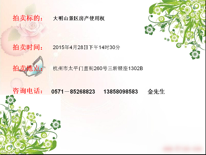 大明山景區(qū)房產(chǎn)使用權(quán)拍賣