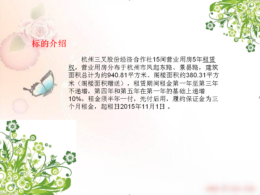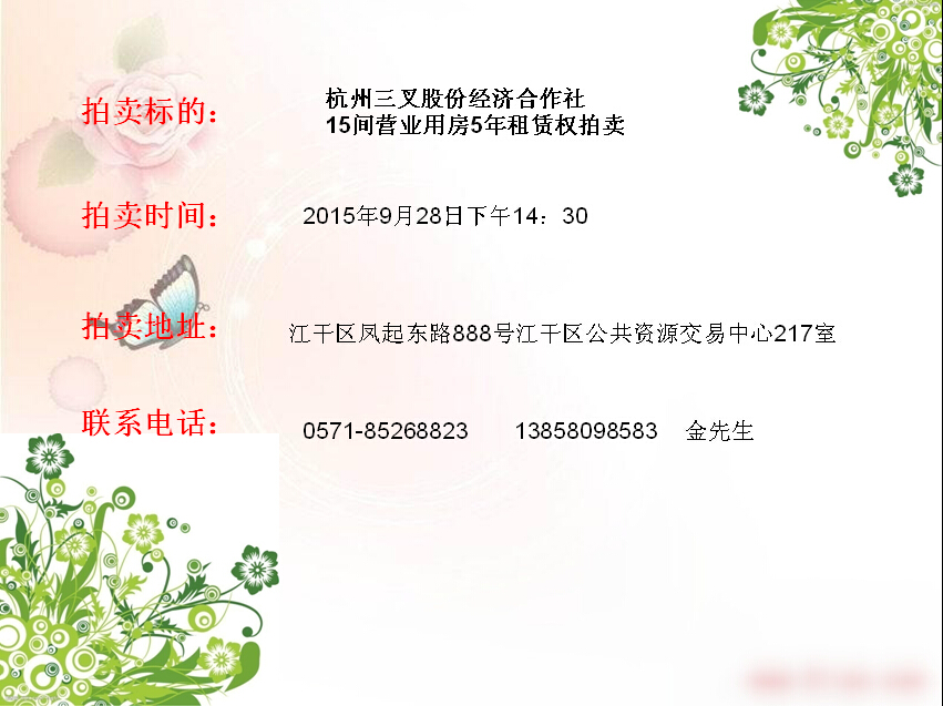 杭州三叉股份經(jīng)濟合作社15間營業(yè)用房5年租賃權(quán)拍賣