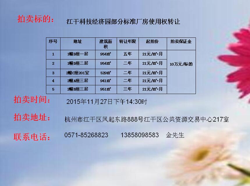 江干科技經(jīng)濟(jì)園部分標(biāo)準(zhǔn)廠房使用權(quán)轉(zhuǎn)讓