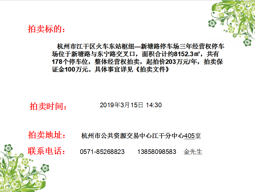 杭州市江干區(qū)火車東站樞紐—新塘路停車場三年經營權