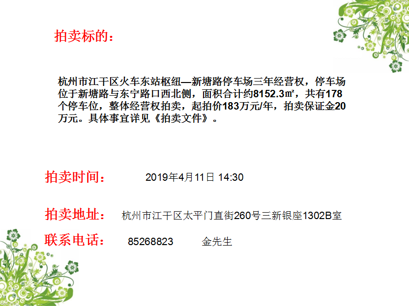 杭州市江干區(qū)火車(chē)東站樞紐—新塘路停車(chē)場(chǎng)三年經(jīng)營(yíng)權(quán)