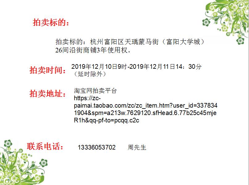 杭州富陽區(qū)天瑀蒙馬街(富陽大學城)26間沿街商鋪3年使用權(quán)
