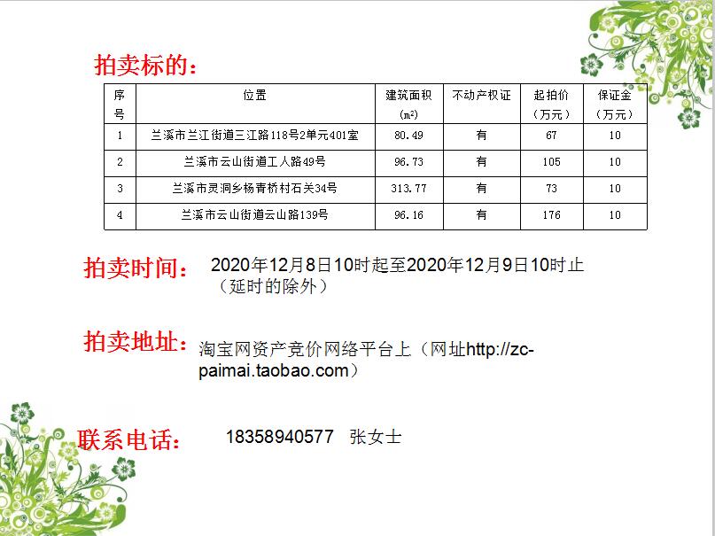 浙江省蘭溪市四處房產(chǎn)拍賣