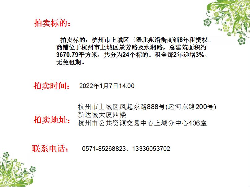 杭州市上城區(qū)三堡北苑沿街商鋪8年租賃權(quán)