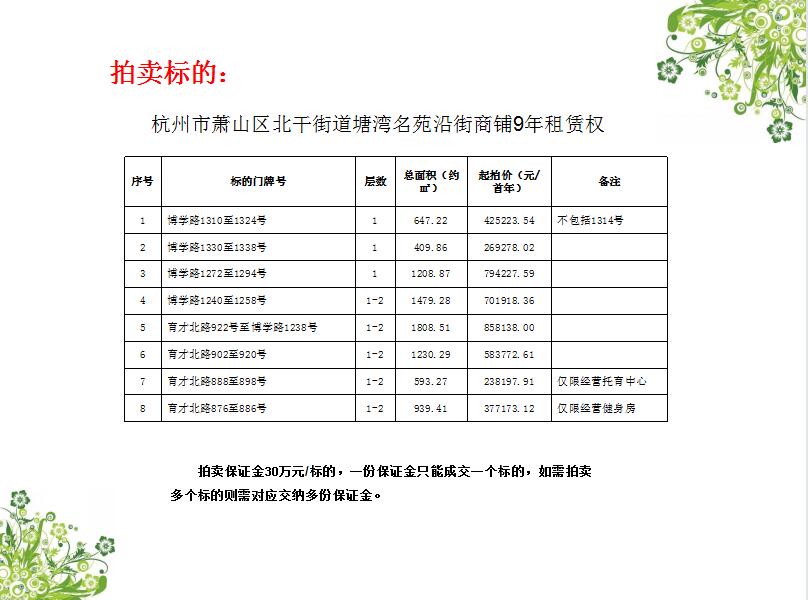 杭州市蕭山區(qū)北干街道塘灣名苑沿街商鋪9年租賃權(quán)