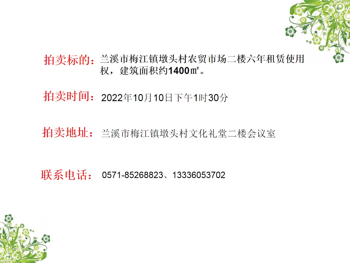 蘭溪市梅江鎮(zhèn)墩頭村農(nóng)貿(mào)市場(chǎng)二樓六年租賃使用權(quán)
