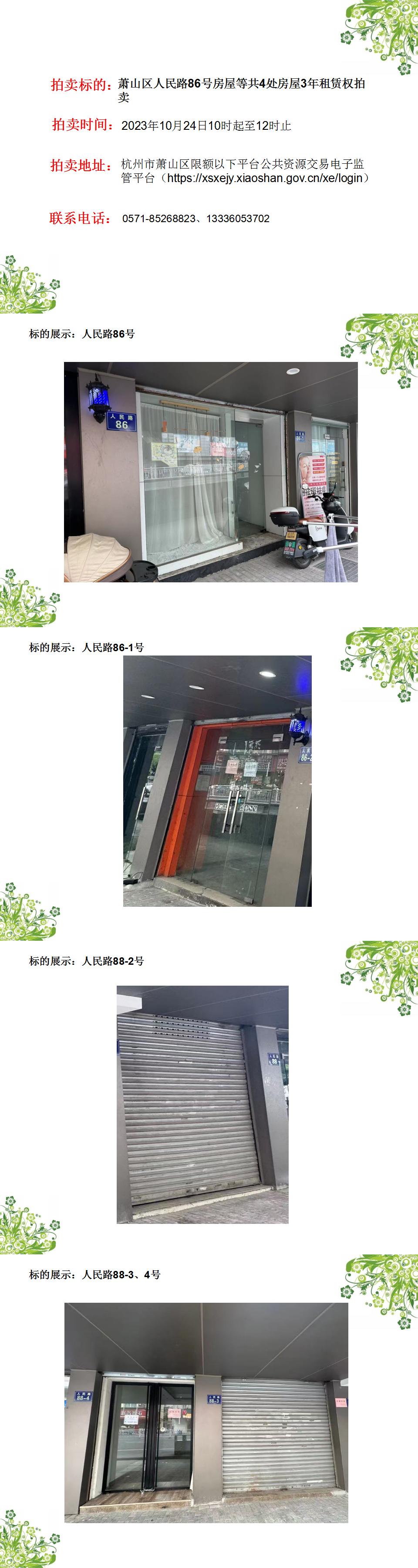 蕭山區(qū)人民路86號(hào)等共4處房屋房屋3年租賃權(quán)