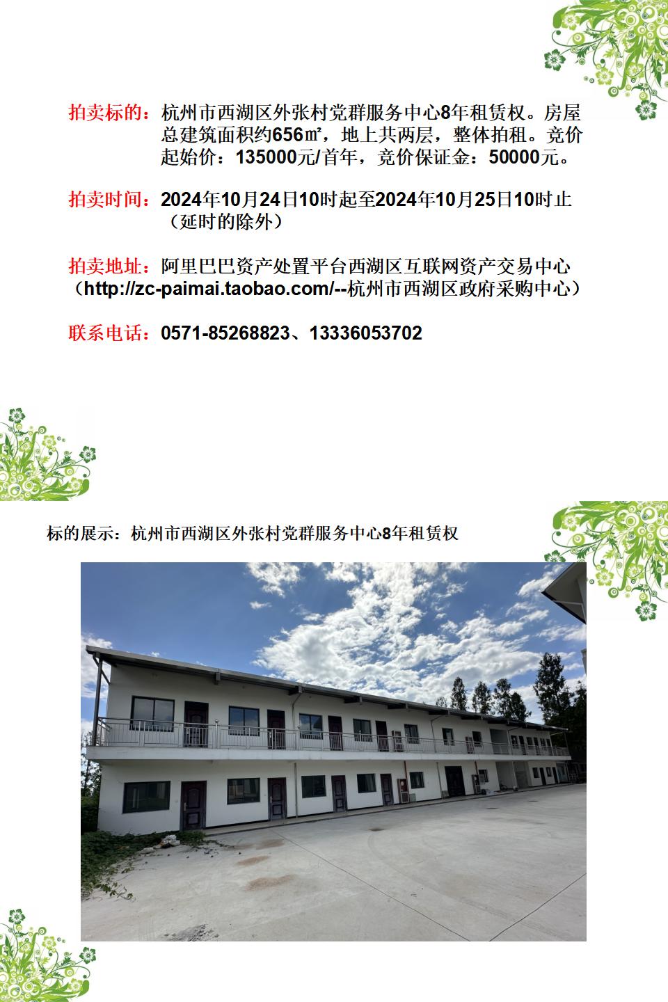 杭州市西湖區(qū)外張村黨群服務(wù)中心8年租賃權(quán)
