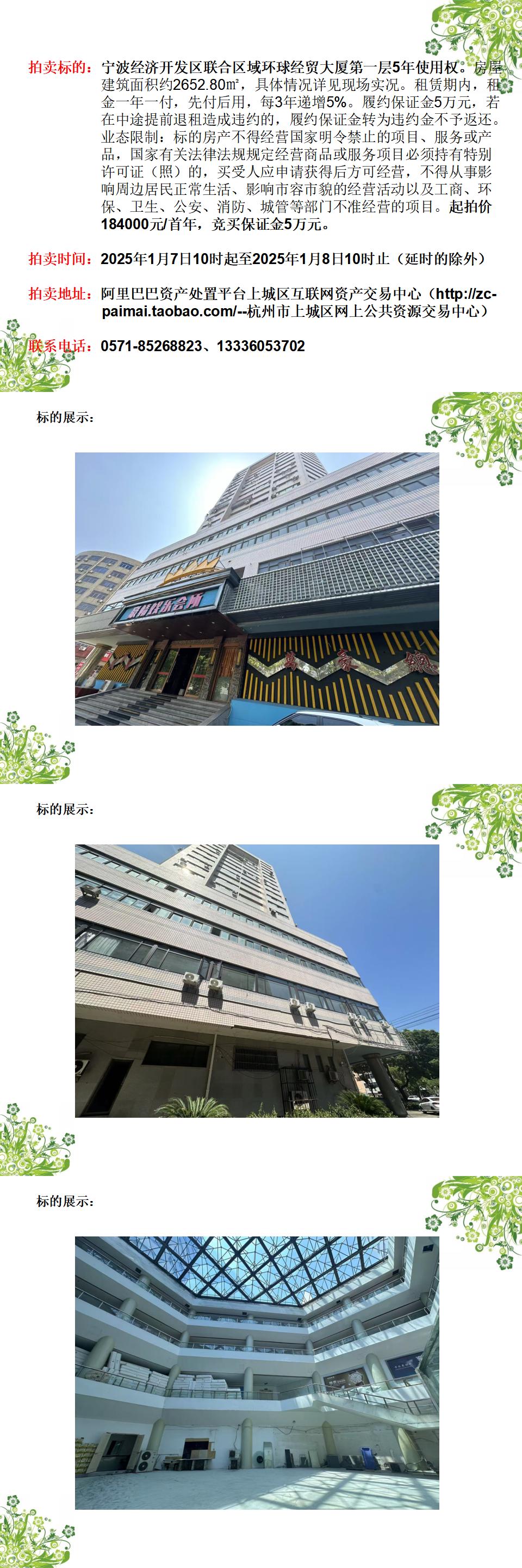 寧波經(jīng)濟(jì)開(kāi)發(fā)區(qū)聯(lián)合區(qū)域環(huán)球經(jīng)貿(mào)大廈第一層5年使用權(quán)
