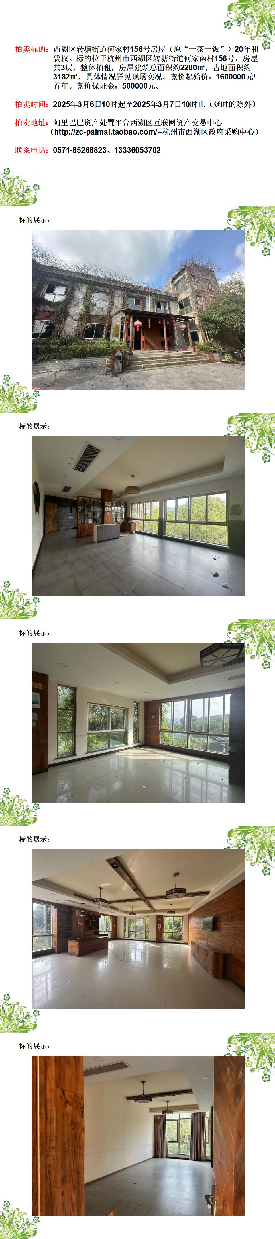 西湖區(qū)轉(zhuǎn)塘街道何家村156號房屋(原“一茶一飯”)20年租賃權(quán)