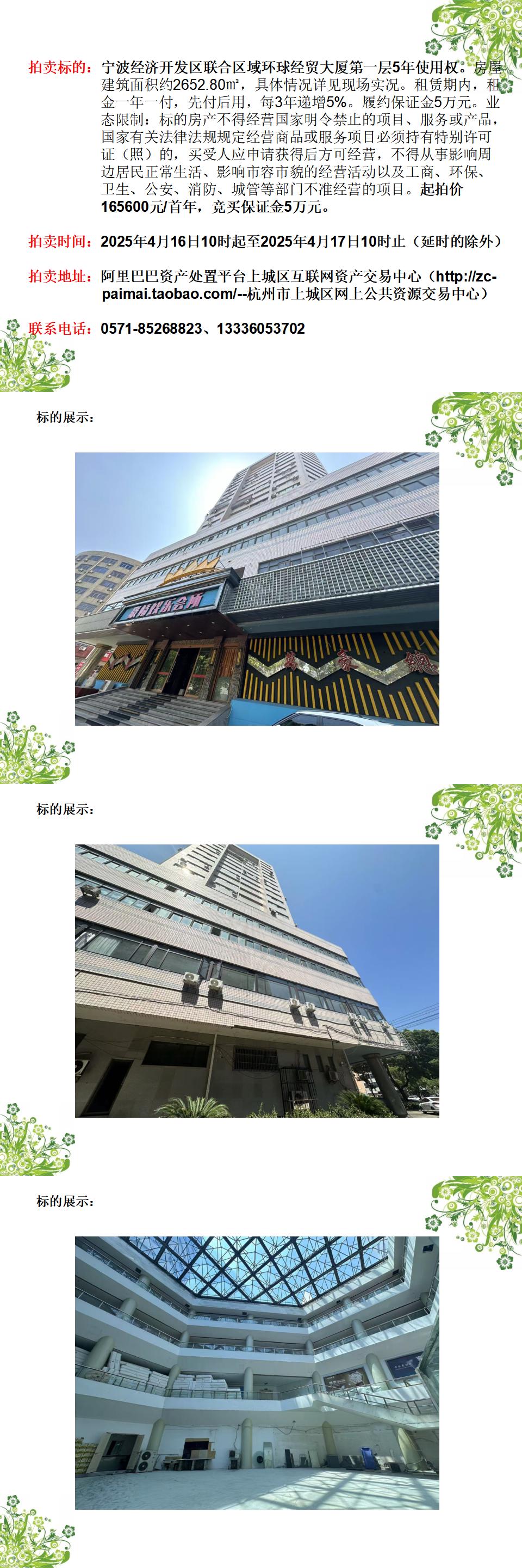 寧波經(jīng)濟開發(fā)區(qū)聯(lián)合區(qū)域環(huán)球經(jīng)貿(mào)大廈第一層5年使用權(quán)