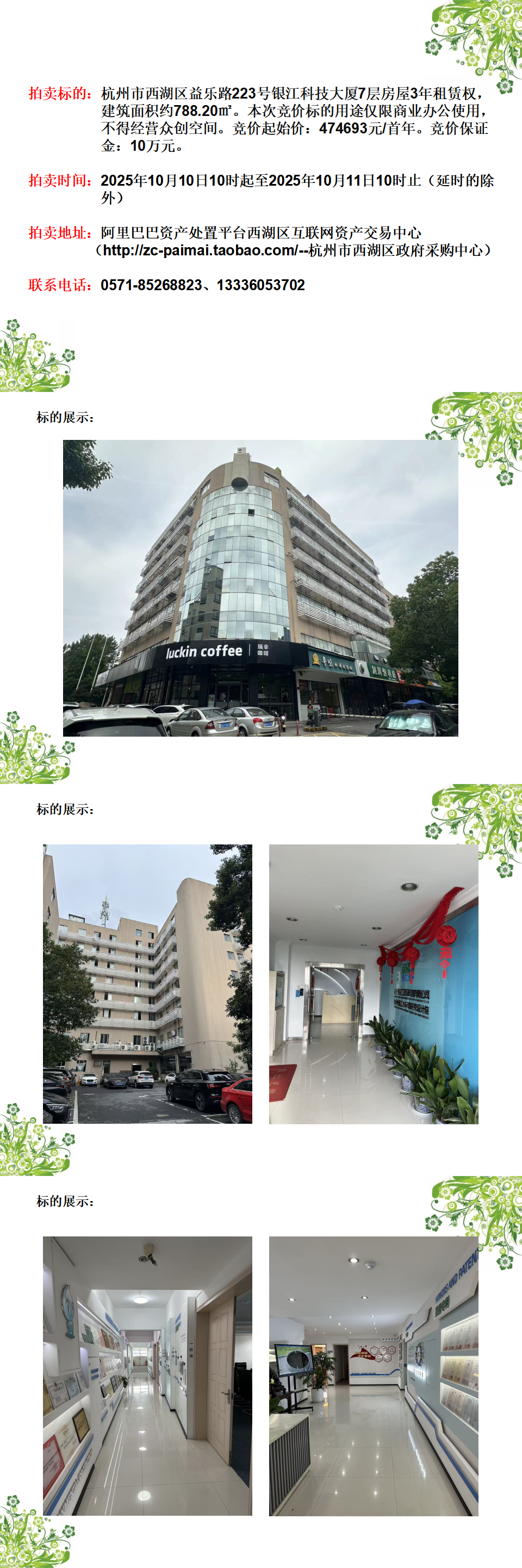 杭州市西湖區(qū)益樂路223號(hào)銀江科技大廈7層房屋3年租賃權(quán)