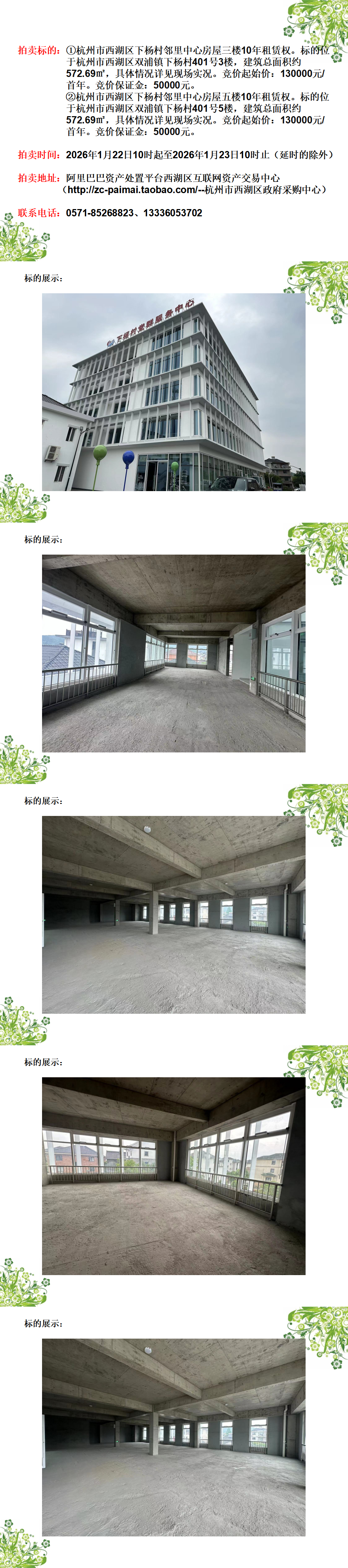 杭州市西湖區(qū)下楊村鄰里中心房屋3、5樓10年租賃權(quán)